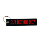 Keep it playful with the 'But Did You Die' flight tag keychain. A cheeky reminder to embrace the adventure.