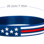 Show your patriotism with the 'American Flag' wristband. It is a simple yet bold design, perfect for any occasion. Material: Silicone Style: American Flag Type: Wristband