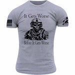Brace for the unexpected with the 'It Gets Worse' T-shirt. Perfect for those with a sense of humor about life’s twists and finding comfort in the discomfort.Our Tactical Morale Shirts are crafted with precision and...