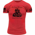 Brace for the unexpected with the 'It Gets Worse' T-shirt. Perfect for those with a sense of humor about life’s twists and finding comfort in the discomfort.