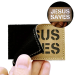 Show your faith with the 'Jesus Saves' embroidered velcro patch. These are two words that make up the biggest statement of all.